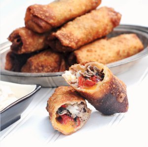 This great appetizer recipe puts your favorite sandwich into one tightly packed egg roll. We know it sounds crazy, but with your first bite, you'll realize just how good they actually are. Packed with mushrooms, bell peppers, cheddar cheese, and small pieces of roast beef, Philly Cheese Steak Eggrolls are perfect for your a game-day or family parties.