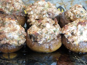 This is a great recipe. Made them this afternoon to take to a church dinner and they were gone in a matter of minutes. The chopping of the mushroom stems and rubbing the olive oil on the mushrooms took the longest, but well worth it. Everyone raved over them. Thanks for a great recipe.