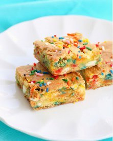 If you're looking for fun and festive dessert recipes for your next birthday party or celebration, look no further than these colorful Cake Batter Blondies. Made with yellow cake mix, white chocolate chips and, of course, sprinkles, these cake batter bars are some of the most delicious desserts we've tasted. They're chewy, gooey and oh so tasty!