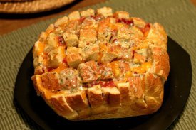 I love these slice-and-stuff types of breads. They're open to all sorts of experiments and variations. I like this version a lot. I tried it with a sourdough rye I got from our local Kroger and it worked very well. It's a great item to serve with some beer and everyone enjoyed it thoroughly. I might try adding some ham the next time I make this, plus adding a bit of swiss cheese to the cheddar in the recipe.