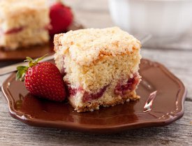 With eight ounces of fresh strawberries and the perfect sweet crumb topping, this Strawberry Coffee Cake may just be the best coffee cake you'll ever taste. If you're looking for a way to jazz up your ordinary coffee cake recipes, try infusing fresh fruit into your dish. This strawberry coffee cake recipe will show you how it's done.