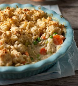 Chicken pot pie recipes are the ultimate in comfort cooking, there's no arguing with that. However, sometimes certain chicken pot pies can have a little too much pie crust and not enough filling. Not this Chicken Pot Pie Crumble! With a fluffy biscuit topping instead of a heavy crust, this recipe wins when you want to make old fashioned chicken pot pies with a modern makeover. Try it for dinner tonight and you'll see what we mean.