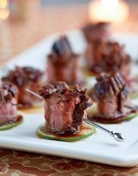 What a fancy and great looking little appetizer! I like the idea from the photo of placing the rolled up steak on thin slices of lime. For some reason, I think this could be upscaled into an entree by making the beef rolls larger and placing them on a bed of rice. This is something I definitely want to try out for our next gathering.