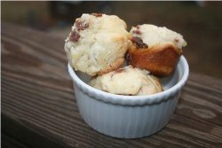 - 12 ounces refridgerated buttermilk biscuits, cut into 1/3rds