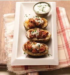 It seems like everything nowadays is made buffalo style. And there's nothing wrong with that. Buffalo Style Potato Skins are a great alternative to your usual appetizer recipe. Dip them in your favorite dressing and enjoy!