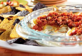 Everyone loves this creamy, cheesy and spicy dip, featuring cream cheese, salsa and cheese sauce. Not only is the taste phenomenal, but this Easy Cheesy Layered Dip from Campbell's Kitchen is also super quick to prepare. In just seconds you'll have a hot cream cheese dip for your guests to enjoy! Serve with tortilla chips and vegetable dippers for one of the best party-pleasing hot appetizers around!