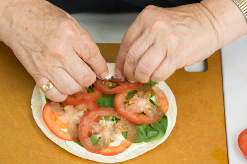 We created this pinwheel recipe with party food in mind. Fresh tomatoes, spinach, and cilantro are rolled between a layer of cream cheese and tortilla shell. This vegetarian-friendly recipe will please all party-goers no matter their eating habits. Even if a party isn't on your list of weekend plans, these pinwheels make great snack food. They're healthy alternatives for your family to eat as compared to most other snacks. Break out your food processor and these easy, delicious Party Tortilla Pinwheels will practically make themselves!