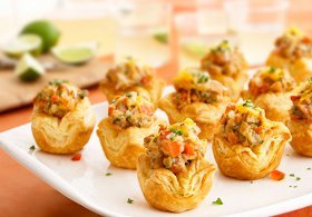 A perfect finger food for your next party, King Ranch Chicken Shells are a outrageously good appetizer. With a flaky pastry bottom, these cute little bites are then topped with a spicy chicken mixture and melted cheese. A great addition to your other appetizer recipes, these will most likely be the first to go.