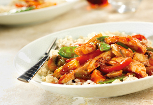 Stir the picante sauce, hoisin sauce and chicken in the skillet. Cook until the mixture is hot and bubbling, stirring occasionally. Serve the chicken mixture with the rice.