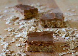 - Melt the topping ingredients together and spread over the cooled oat bars. Chill for 3 hours before cutting.