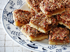 I really like this recipe. Pecan pie is one of our favorites, and it's great to have it in an easy-to-make bar version. Even though they probably wouldn't last that long around our house, I'm wondering how well they'd keep in the freezer. These are perfect with a cup of tea or coffee.