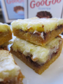 These Ooey Gooey Goo Goo Bars look so good. The recipe is easy to follow and real easy to make!