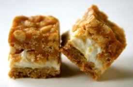 - Spread the peanut mixture over the marshmallows and chill until firm. Cut into 36 bars.