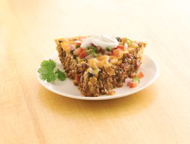 - Preheat oven to 400 degrees F. Spray 9-inch glass pie plate with cooking spray. In 10-inch skillet, cook beef over medium heat 8 to 10 minutes, stirring occasionally, until browned; drain.