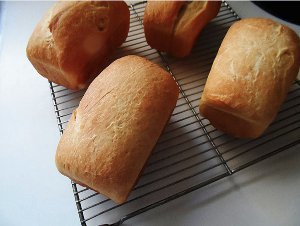 Melt one tablespoon of butter and brush on the tops of the loaves. Bake for 28-30 minutes.