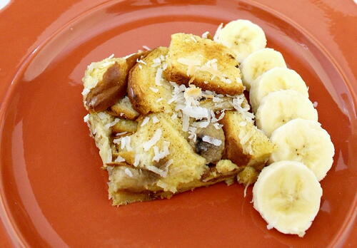 Using King's Hawaiian rolls for a French toast bake is really a no brainer. The sweet, fluffy rolls are perfect for soaking up a rich custard. During baking the bread becomes gooey on the inside and crisp on the outside. Plus, we added plenty of tropical ingredients to this recipe to make it even better! Sliced bananas, shredded coconut, vanilla, and cinnamon all combine for a flavor that will have you going back for seconds.
