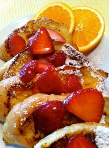 This great breakfast recipe is loaded with the sweet flavors of the infamous pina colada. With every bite you'll taste pineapples and coconut and feel like your enjoying breakfast on the beach. Topped with fresh strawberries and powdered sugar, it's one of the tastiest recipes for french toast.