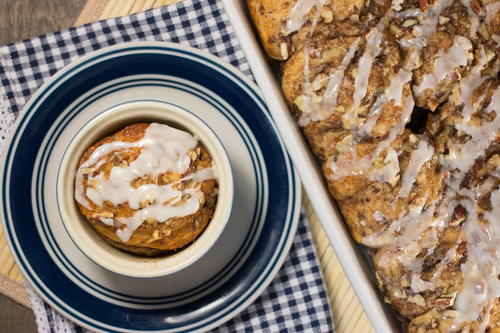 Cinnamon rolls are my family's Christmas morning tradition. Perhaps, we'll give this a try minus the nuts, because my brother is allergic! I love maple syrup but this may also be delicious with some honey!