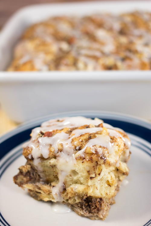 This cinnamon roll casserole reminds me of the holidays. It's a special treat to share with family.