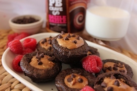 Fill the indentation with a scoop of peanut butter and top with some mini chocolate chips (or a raspberry).