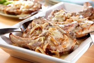 Oh my gosh are these porkchops delicious! Sometimes I like to stir in a little bit of extra flavour by adding worchestershire sauce or a bit of dry onion soup mix. They are great served with potatoes because you can pour the leftover porkchop sauce over the top. Yum!