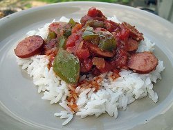 I love sausage and peppers so naturally I'm going to try this out. I have a question, though. In the photo, the jambalaya mixture is spooned over the cooked rice. In the instructions, it's implied that the cooked rice is added to the dish and cooked for an additional seven minutes along with the tomatoes and broth. Wouldn't using cooked rice render it almost overcooked? In traditional jambalaya, the rice is added during the cooking process to make something like paella as Zeemer points out. It sounds great, though, whichever way it's served.