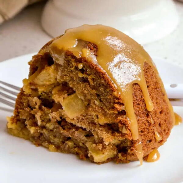 "This delectable Apple Cake has a slightly crunchy crust and a soft, tender center loaded with chunks of sweet apple and pecans. It is perfectly spiced with cinnamon, ground cloves, and nutmeg and lightly drizzled with an easy four-ingredient caramel sauce. This cake is perfect for bake sales, potlucks, and family and friend get-togethers. A scrumptiously moist Apple Cake with chunks of fresh apples and pecans in every slice, all topped with an easy four-ingredient caramel glaze "