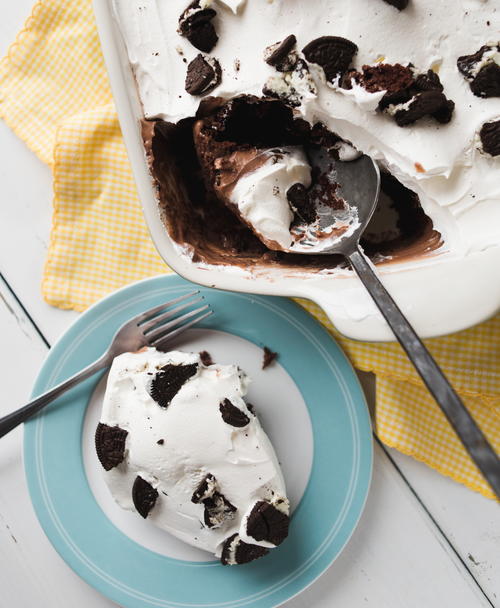 Cookies and cream is a classic flavor combination for a reason. There’s something about the crunchy chocolate and creamy vanilla filling that’s just a mouthful of heaven. That’s the inspiration behind this Oreo poke cake dessert. Because why just have a cookie, when you can have an entire slice of cake that incorporates all of your favorite things about Oreo cookies? Rich, chocolaty, and good for the soul, this Oreo pudding poke cake is a little slice of paradise. It’s a great recipe for any event, especially potlucks!