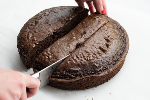 Use a knife to cut a piece of the center of the cake out.
