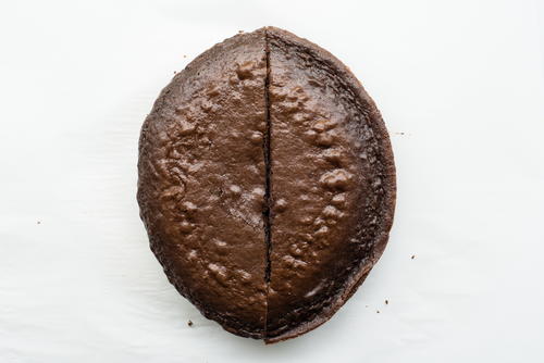 Sandwich the two rounded pieces of cake together to form your football shape.