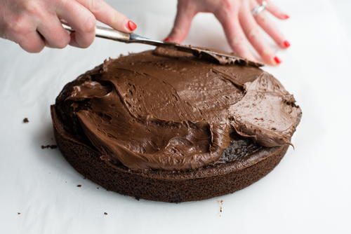 Frost the cake with your chocolate frosting.