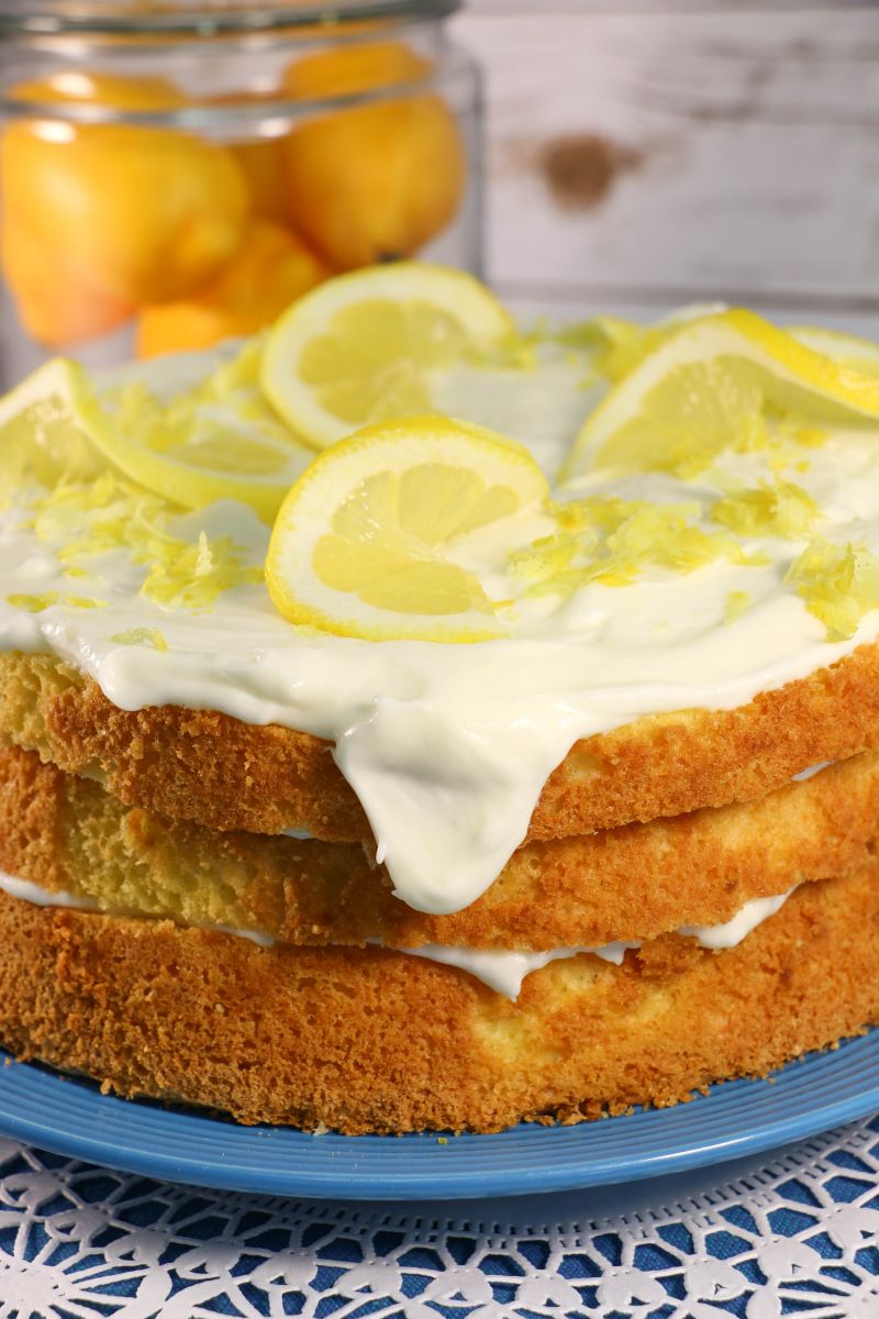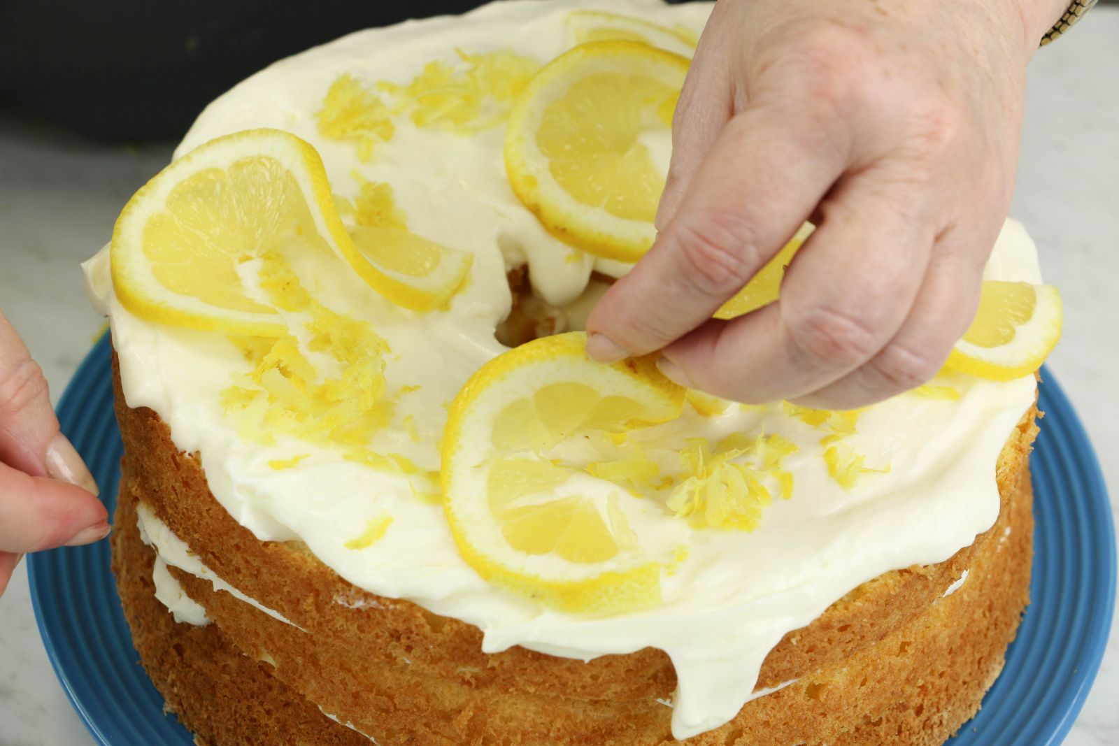 - Before serving, top the cake with sifted powdered sugar and lemon slices, if desired.