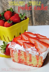 That pina colada cake sounds absolutely so great. And so does this strawberry lemonade poke cake! I especially like the use of fresh strawberries. Perhaps, adding some lemon zest on top would also be a good topping! I have made a pumpkin poke cake with spiced cake mix and pumpkin puree topped with chopped nuts! Yummy!