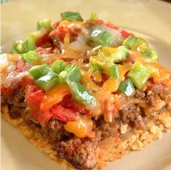 Great recipe, except for dry onion soup(to high in sodium) mix and the green bell pepper. I used a real onion saute with the beef, a low sodium taco mix and a mild green chile pepper and green onions for the top