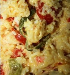 - Spray 9x13 casserole dish with cooking spray. Layer rice, crab, and veggies, stir in cheese sauce.