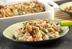 When you're craving something full of flavor and comfort, turn to this simple recipe for Country Turkey Casserole. Filled with savory turkey, stuffing and veggies, this is one of those easy dinner recipes that will leave you fully satisfied. Perfect to enjoy almost any time of year, this casserole dish from Campbell's Kitchen will soon become a regular feature at your family's dinner table.