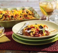 The blend of flavors are amazing in this easy casserole recipe. Layered, with turkey, beans, salsa, cheese and fresh vegetables, this hearty meal will please any hungry family. Make ahead and enjoy the next day. No matter when you eat it, it's great. Easy Mexican Casserole will become a household favorite!