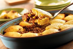 Bake for 25 minutes or until the corn muffin topping is golden brown.