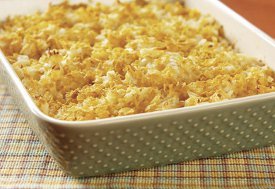 Sprinkle the potato mixture evenly with the crushed corn flakes.