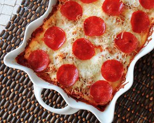 Thanks to Janice L below for the hint about draining the pasta early so it doesn't overcook in the casserole. I'd also add a few more of my favorite pizza toppings, like some chopped green pepper and onion to the dish. My wife would definitely include some mushrooms as well. As mentioned, this is a great easy dish to make for a quick dinner or a potluck. I'm definitely adding this to my collection of potluck recipes.
