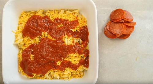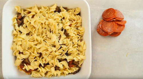 What a fabulous idea! I am a big fan of baked pasta casseroles, but I never thought of putting pepperoni on top of one. And with the ground beef too -- talk about a meat lover's dream! I would definitely recommend cooking the egg noodles al dente or even a little under cooked as they alway cook more when you bake it in the casserole.