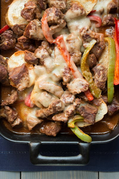 As a big fan of Philly cheesesteak I was really excited when I saw the name of this recipe, but now I'm just confused. Deglazing the pan after searing the steak sounds super flavorful but what are all of the other sauces for, wouldn't they take away from the pepper flavor? And ginger in Philly cheesesteak? Personally, I think I would add everything to a crockpot so it can incorporate all of the flavors slowly...minus the sauces. Kenziewood, I think Monterey Jack cheese might work in place of provolone, it's somewhat similar in flavor.