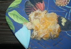 - Layer tortillas on bottom of dish. Cover with half of the mixture.