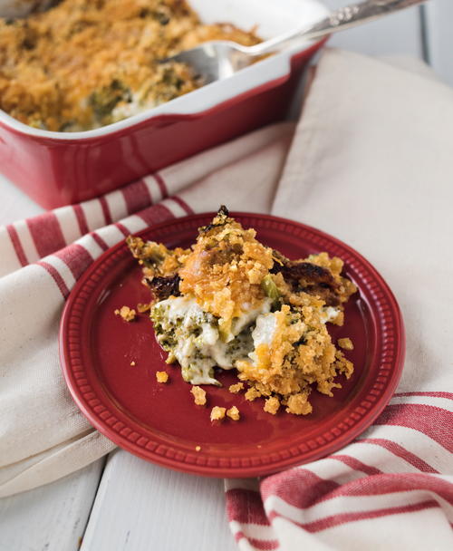 Pour the sauce over the broccoli in the baking dish and stir gently. Mix the cheddar cheese, paprika, and crackers and top the casserole in an even layer. Bake for about 40 minutes, until bubbling and the top is golden brown. Slice and serve.