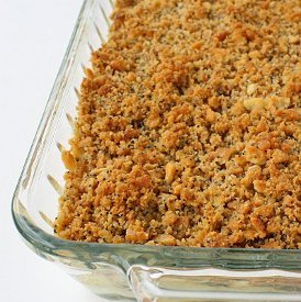 Topped with a mixture of crushed Ritz crackers, poppy seeds and melted butter, there's no way this Baked Crispy Chicken Casserole could be anything but delicious with unbelievable texture. If you're tired of making the same old easy casserole recipes, here's a new and unexpected version that will have the whole family saying "wow". Be sure to keep the recipe handy because once people get a taste of this awesome chicken casserole, they're going to be asking how you made it!