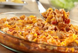 Crisp tortilla pieces are layered with a mixture of Campbell's Condensed Tomato Soup, salsa, cooked chicken and Cheddar cheese, and baked until golden and bubbly in this quick and easy casserole. Make this for dinner tonight and see why you'll love the E-Z Chicken Tortilla Bake.