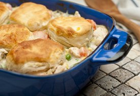 This easy chicken and biscuits recipe features an enticing sauce made with cream of potato and cream of broccoli soups, and is topped with golden biscuits for a real home-style flavor. This great Campbell's Kitchen recipe is on the table in just 45 minutes. With dinner recipes this easy you'll never have to worry.