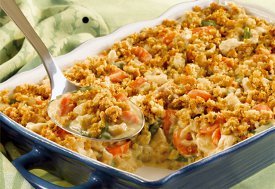 A very good dish that everyone in the family will love. I just used whatever fresh vegetables we had and it worked out really well. The sauce is yummy but I did have to ad lib because Pepperidge Farm Herbed Seasoned Stuffing is not available here in South Africa. Fortunately my invented stuffing was fine and the altogether the dish was very tasty indeed.