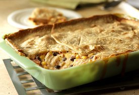 This crowd-pleasing, kicked-up Fiesta Chicken Casserole couldn't be easier...it uses canned chicken, soup, corn and beans and is topped with a refrigerated pie crust. Casserole recipes like this are simply delish!