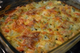 Had this for supper,it was easy to prepare and very tasty.I omitted the Zucchini ,didn't have any on hand.I used leftover fried chicken.